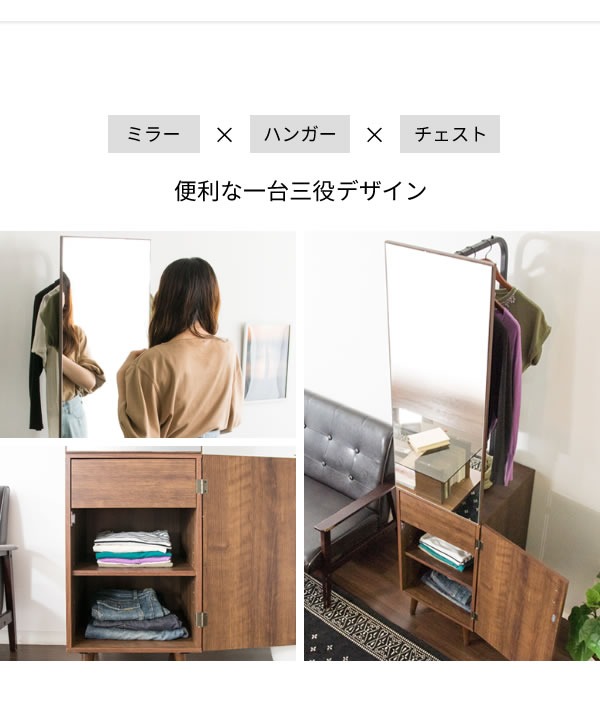 服やアクセサリーが収納できるチェストが一つになった便利なドレッサーハンガー『Adesso(アデッソ)』。