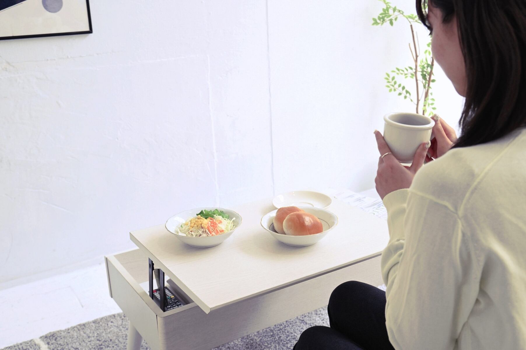 限られたスペースだけどテーブルもドレッサーもデスクも置きたい…という想いを叶えてくれる、1台3役のリフティングドレッサーテーブル!右側を開けばドレッサーに、左側を開ければデスクに早変わり。普段はリビングテーブルとしてお使いいただける多機能なアイテムです。