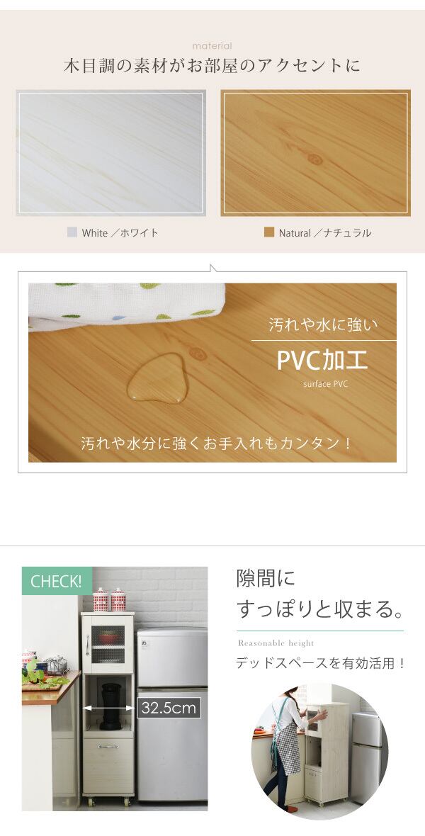 『リュッカランド』スリム キッチンラック 食器棚 隙間タイプ レンジ台 レンジラック 幅 32.5 H120 ミニ キッチン 収納 すきま収納 棚 収納棚 ロータイプ 深型 引き出し