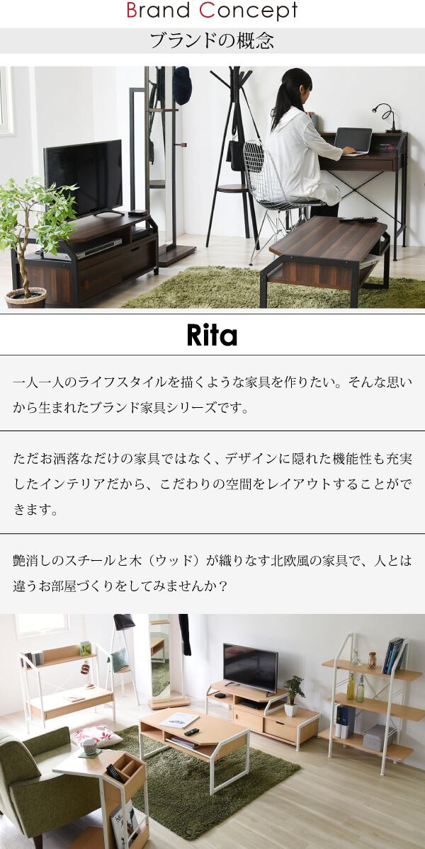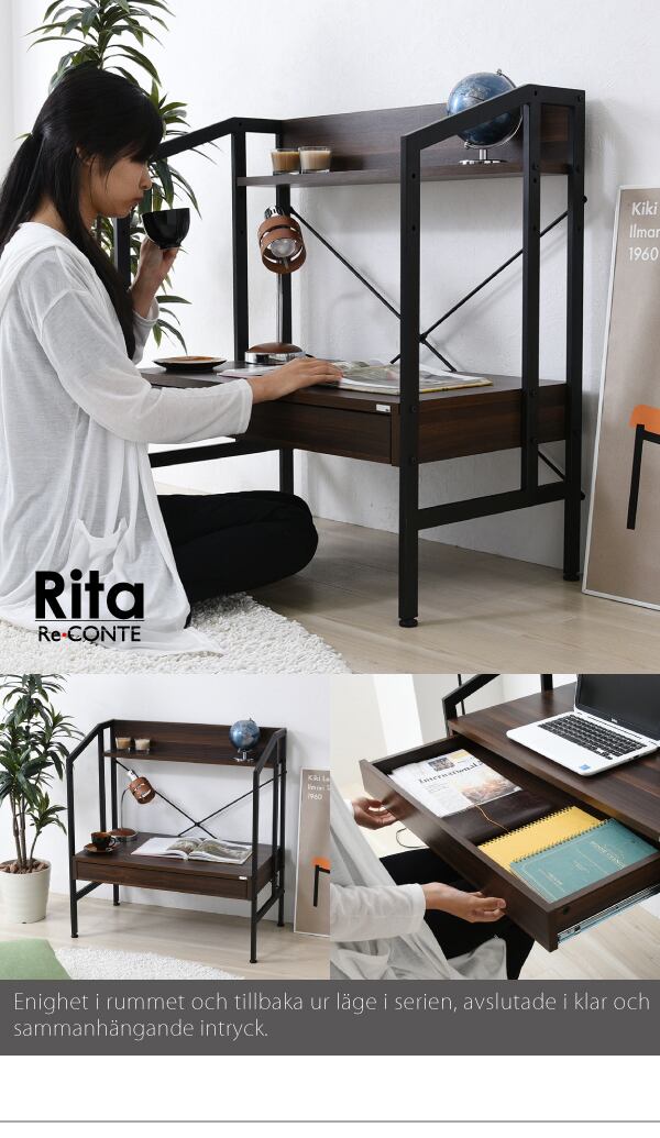 スク ワークデスク PCデスク パソコンデスク パソコン用 Rita 北欧風 北欧 おしゃれ スチール 木製 引出し付き 棚付き カフェ風