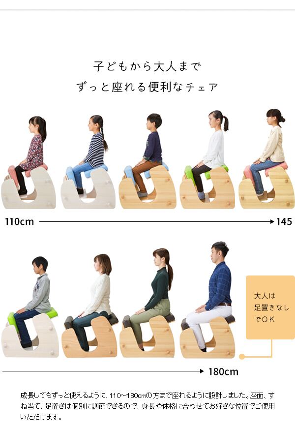 成長してもずっと使えるように、110~180cmの方まで座れるように設計しました。