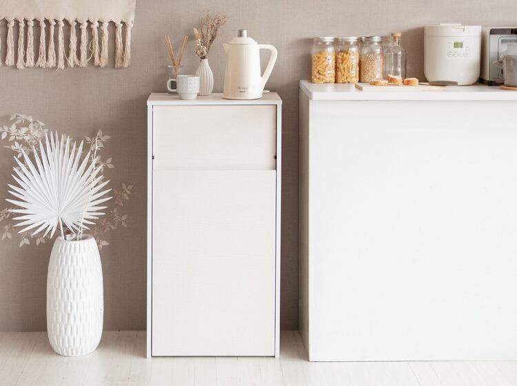 扉を押すだけで簡単にごみが捨てられるプッシュ式のゴミ箱。