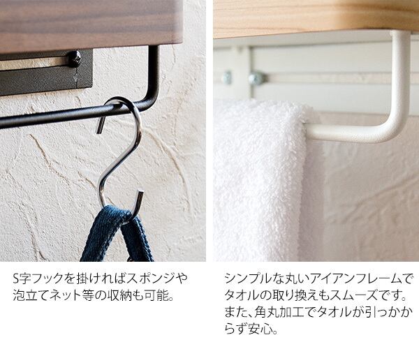 フェイスタオルやバスタオルを掛けてトイレやキッチンでお使いいただけます。ネジ4つで簡単設置が可能。
