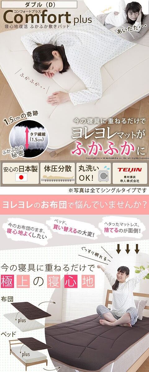 【寝心地復活】 ふかふか敷きパッド コンフォートプラス シングル 100×200cm