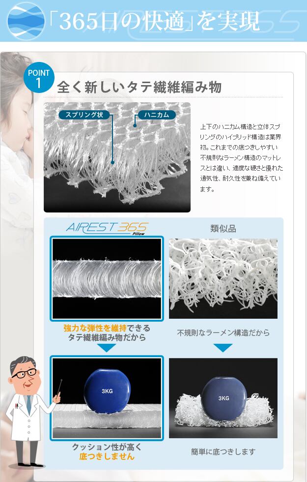 AIRES T365はつぶれやへたりに強い立体構造を実現。