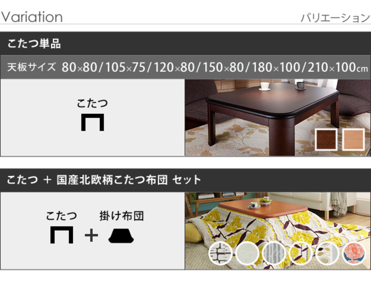 北欧柄こたつ布団6種類 × ナララウンド折れ脚こたつ 2タイプ