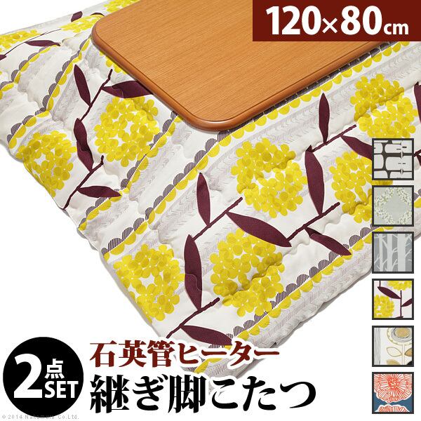 楢ラウンド折れ脚こたつ-リラ 120x80cm 日本製厚手カーテン生地の北欧柄こたつ布団セット