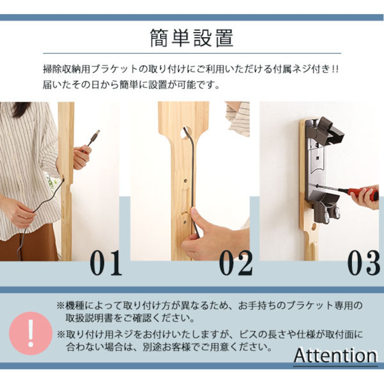 掃除機収納用ブラケットの取り付けにご利用いただける付属ネジ付き‼届いたその日から簡単に設置が可能です。