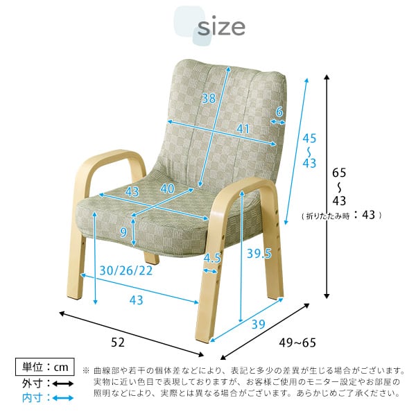 W52×D49~65×H57/61/65(SH22/26/30)cm