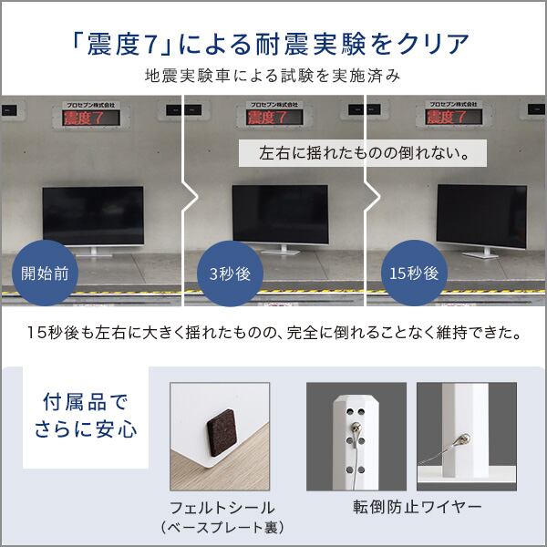 既にお使い頂いているテレビ台やテーブル、チェストの上に置いて、4段階の高さ調整や見やすい角度にスイングができる「ちょい上げスタイル」です。