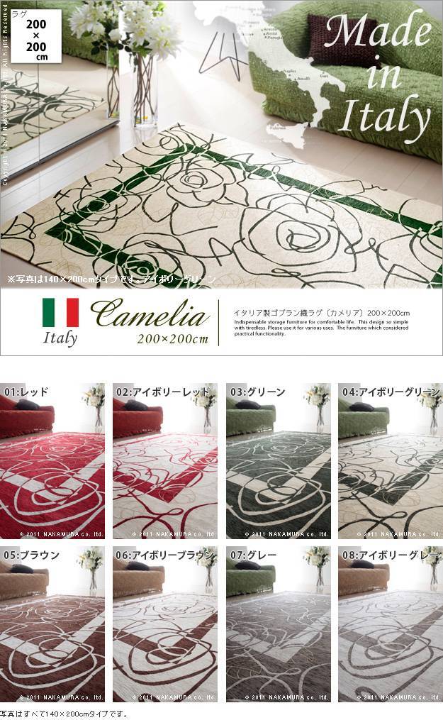 イタリア製ゴブラン織ラグ Camelia〔カメリア〕 200×200cm