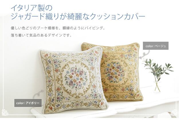 イタリア製ジャガード織りクッションカバー 〔フラワーガーデン〕 45x45cmサイズ用 中身付き