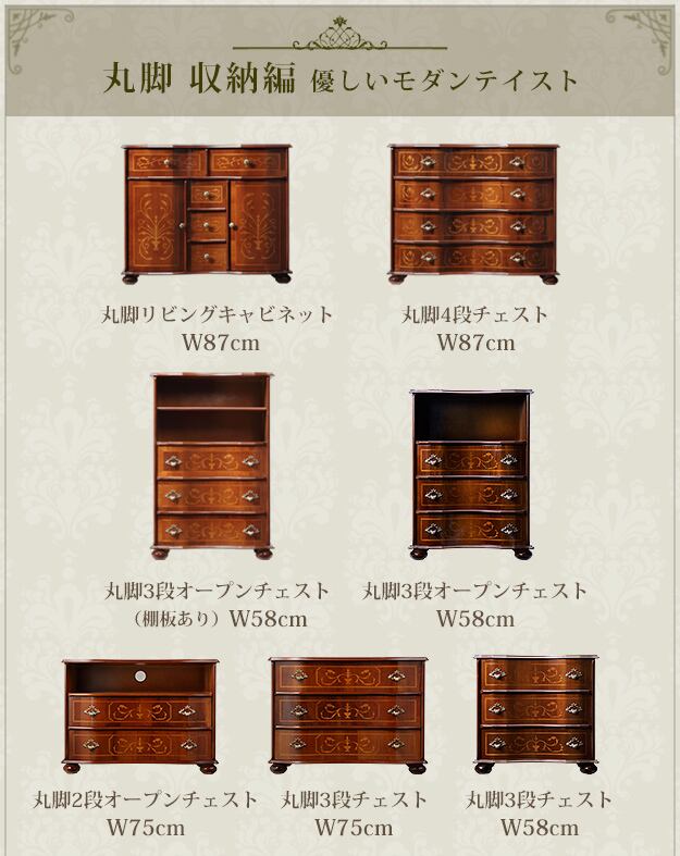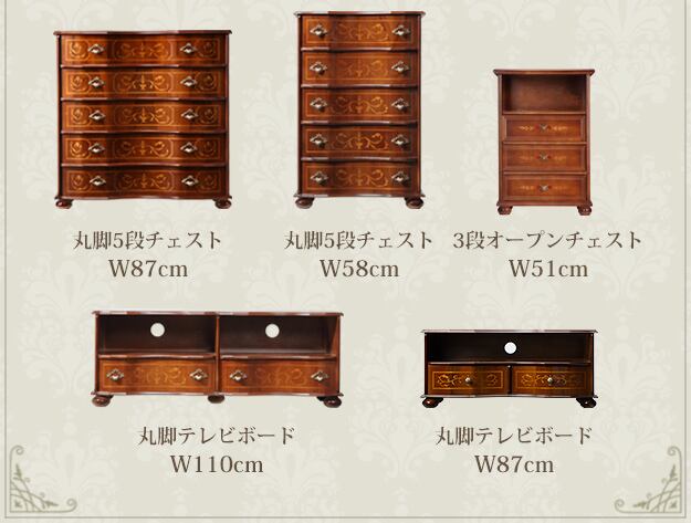 『TVボード 丸脚 W87cm 』ヴェローナクラシック 象嵌 イタリア 輸入家具 高級家具
