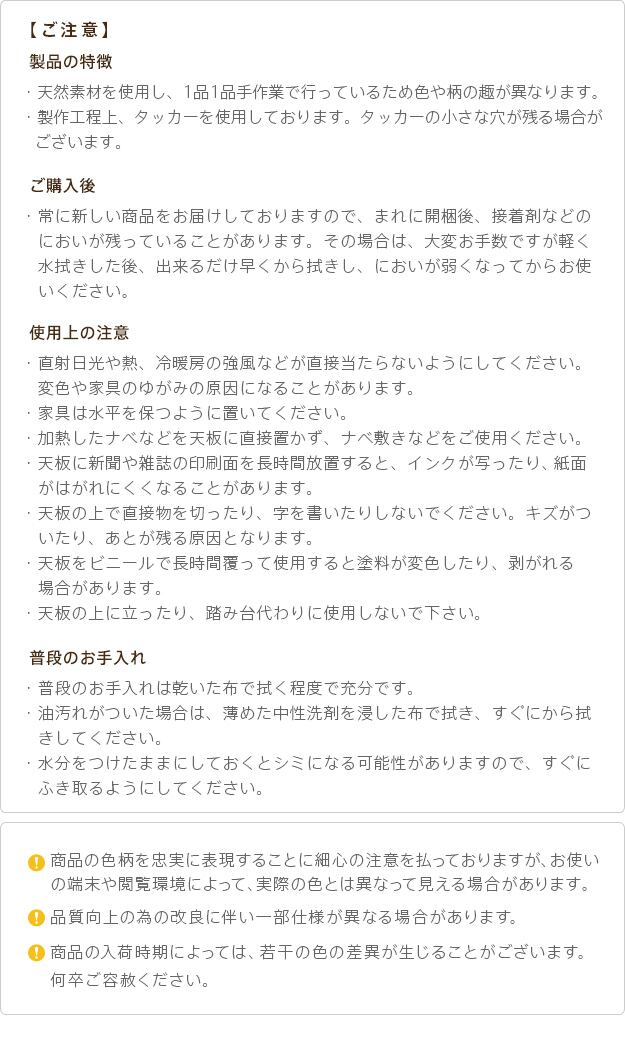 ・加熱したナベなどてんいたに直接置かず、鍋敷きなどをご使用ください。