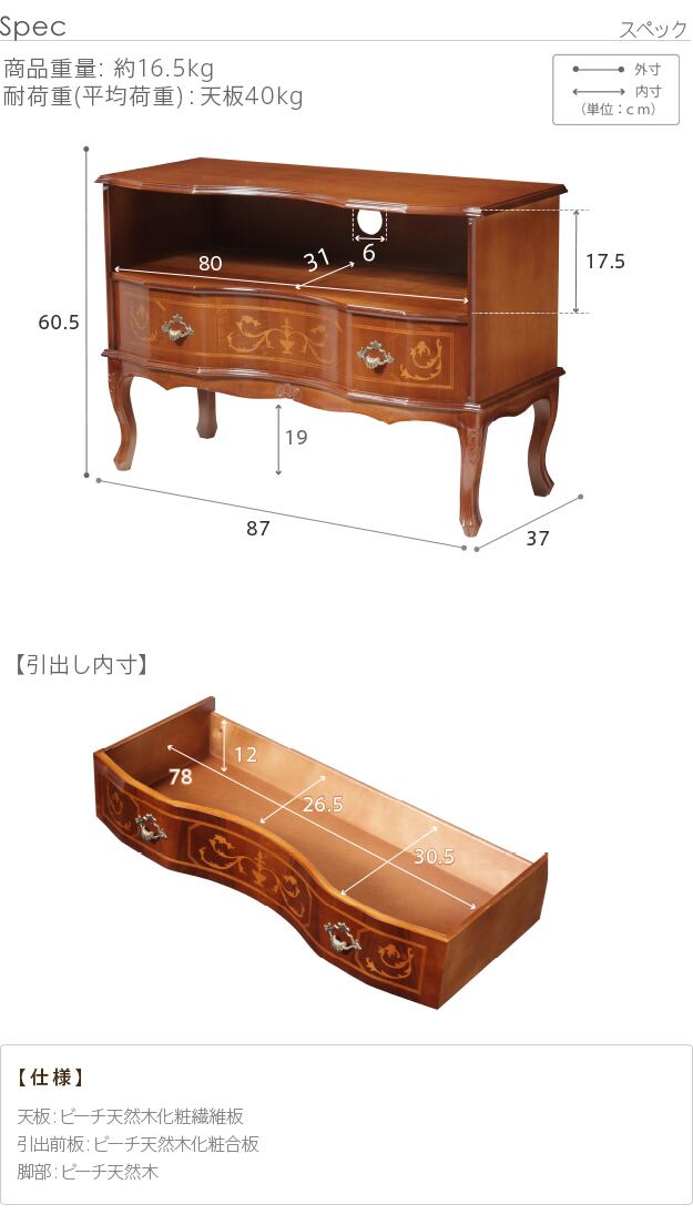 ヴェローナクラシック 猫脚テレビボード W87cm