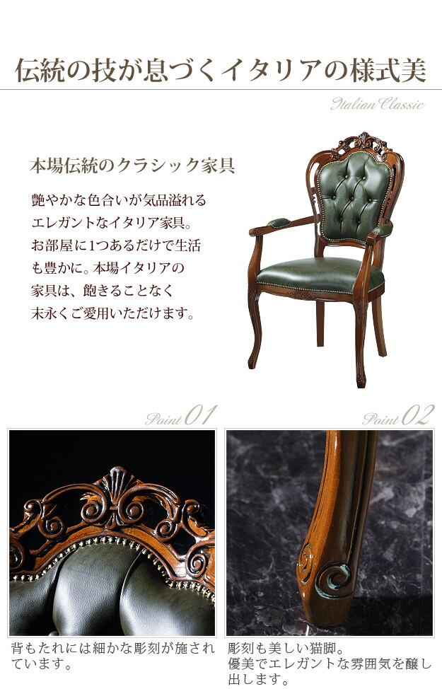 『肘付チェア 革張り』ヴェローナクラシック イタリア 輸入家具 高級