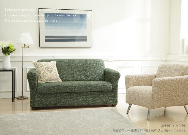 イタリア製ストレッチフィットソファカバー 〔シチリア〕 アーム付き・一体型 3人掛け用