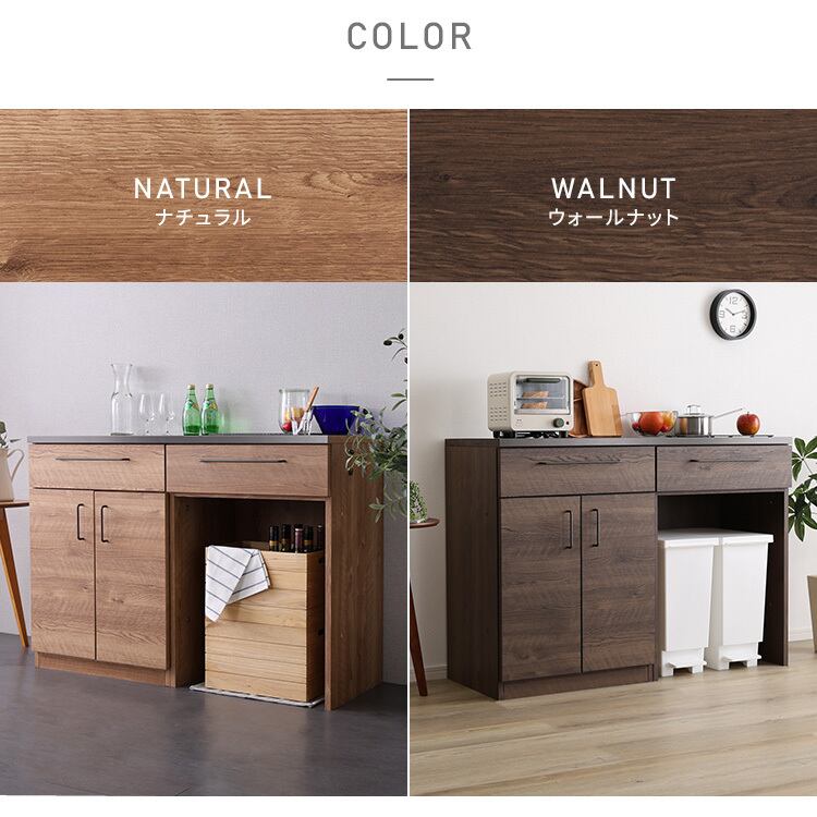 日本製 特殊鋼板を使った組み合わせキッチンカウンター【Lugo-ルゴ-】120cm 扉収納+ゴミ箱上カウンター