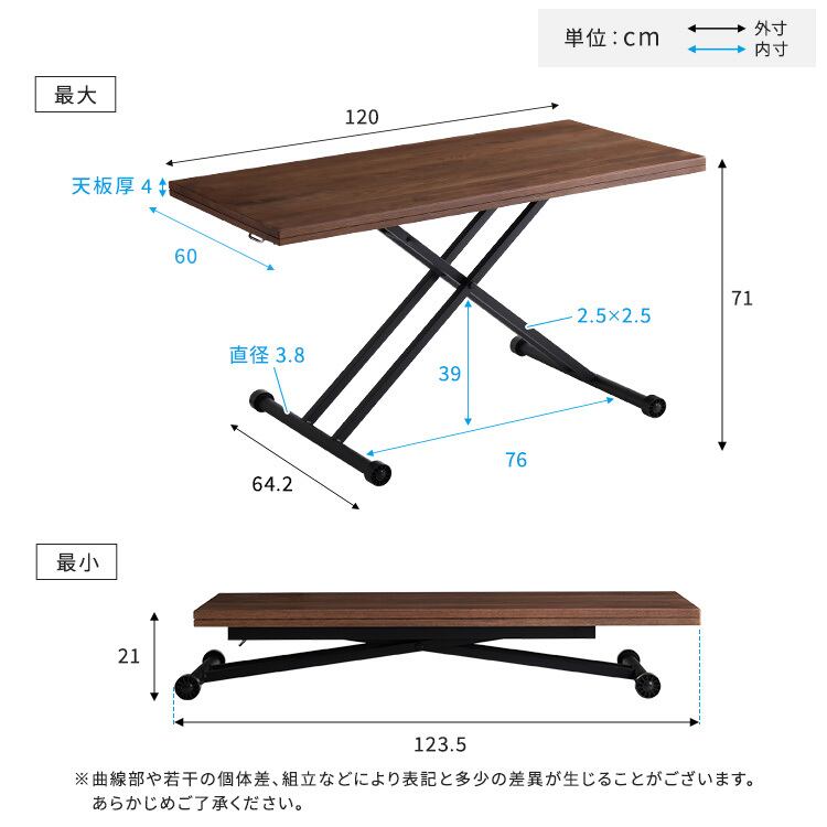 厚みのある3種類の無垢材を使用した天板120cm幅のリフティングテーブル!
